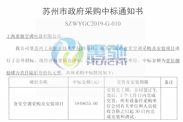 蘇工院空調項目中標通知書
